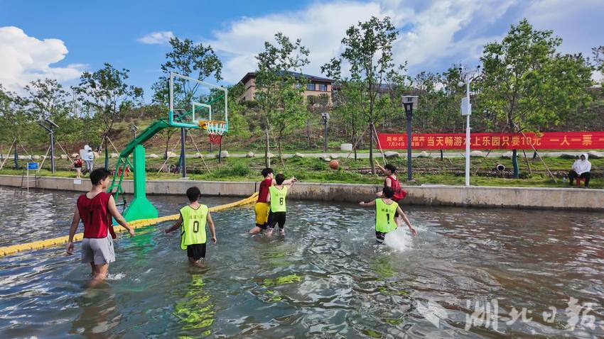 7月24日傍晚时分,城溪水上乐园热闹非凡,一场精彩的水上篮球赛正在这里举行。队员们在波光粼粼的水池中灵活地传球、投篮,尽享夏日清凉。